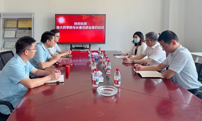 詳情>2025年5月7日上午,海南長春花藥業(yè)有限公司總經理王小力和海南大學藥學院羅院長在長春花藥業(yè)會議室正...